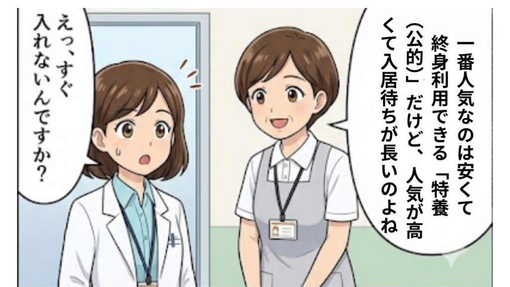| 公的施設 | 特別養護老人ホーム(特養)/介護老人保健施設(老健) | 介護保険適用で費用が安い。待機者が多い傾向。 |