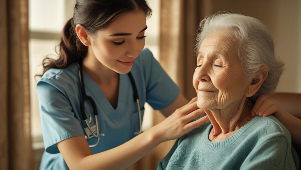 看護師は、在宅や施設で生活する認知症の方の健康状態を把握し、異変を早期に察知します。
