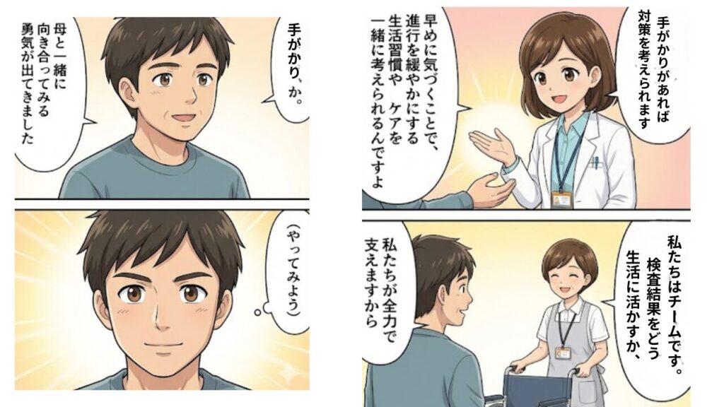 テストをきっかけに、医師やケアチームと一緒に今後の生活やケアのあり方を考えていけると安心につながるでしょう。