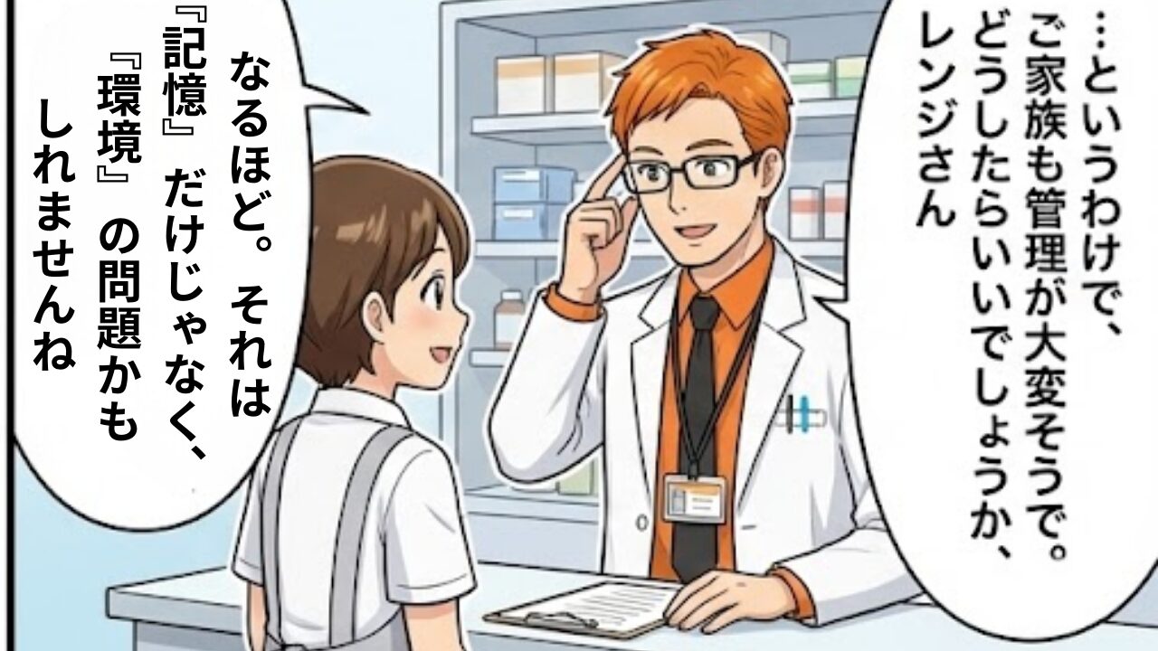 【結論】記憶の手助けとなる「外部の仕掛け」が必要です。 【理由】 認知症の中核症状である記憶障害により、「薬を飲む」という行為自体や、「今が飲む時間である」こと自体を忘れてしまいます。本人の意思や努力ではカバーできません。 【対策】