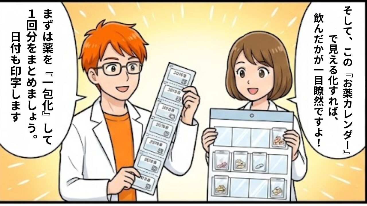 • 一包化やカレンダーで「見える化」する