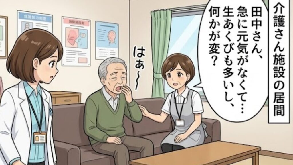 「最近、田中さん(仮名)が急に怒り出すことが増えた。認知症のせいかしら?」 「佐藤さん(仮名)は糖尿病の薬を飲んでいるけど、最近、食事を残すことが多い。」