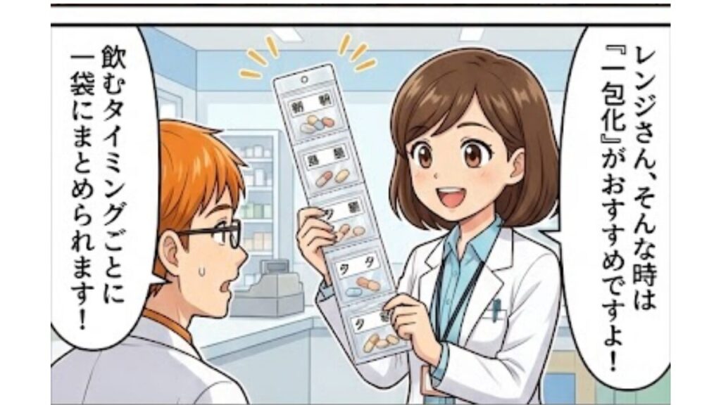 - 依頼方法: 医師の指示が必要な場合が多いため、まずは薬剤師に「飲み忘れが多いので一包化したい」と相談してください。