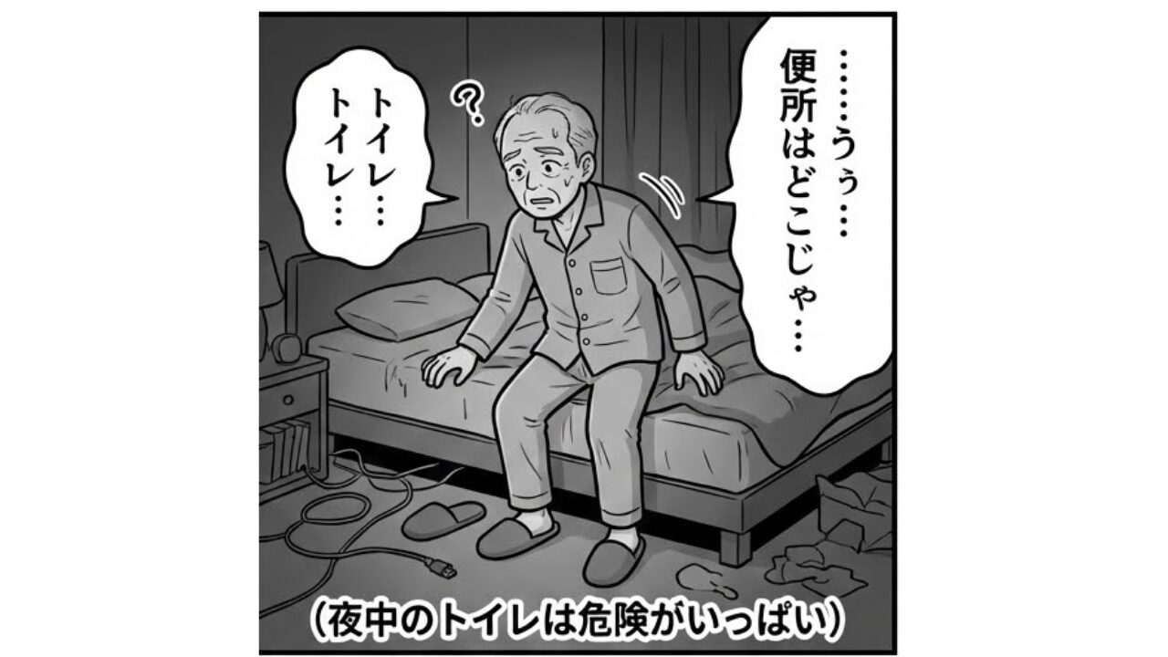 夜間の転倒事故の多くは「トイレへの移動中」に発生します。加齢による腎機能の低下や、心不全、糖尿病などの基礎疾患、あるいは服用している利尿剤の影響で夜間頻尿になります。寝ぼけた状態で、暗い足元の障害物に躓くケースが後を絶ちません。